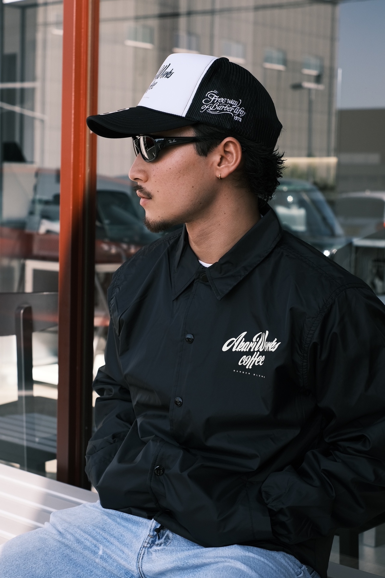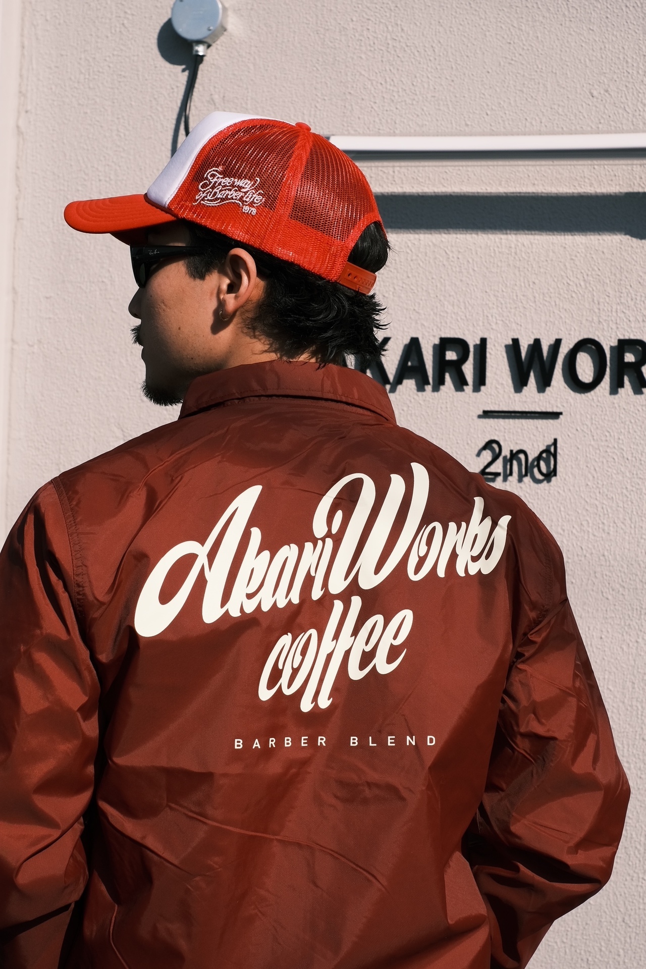 アカリワークスコーヒーオリジナルコーチジャケット (color:ブラック、バーガンディ size:M,L,XL)