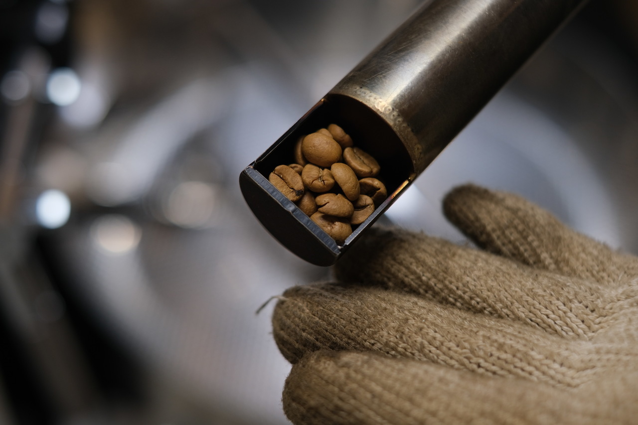 豆が焼け始めるとポップコーンのように弾ける音が聞こえます。そのタイミングからは秒単位で、焙煎工程をチェックします。